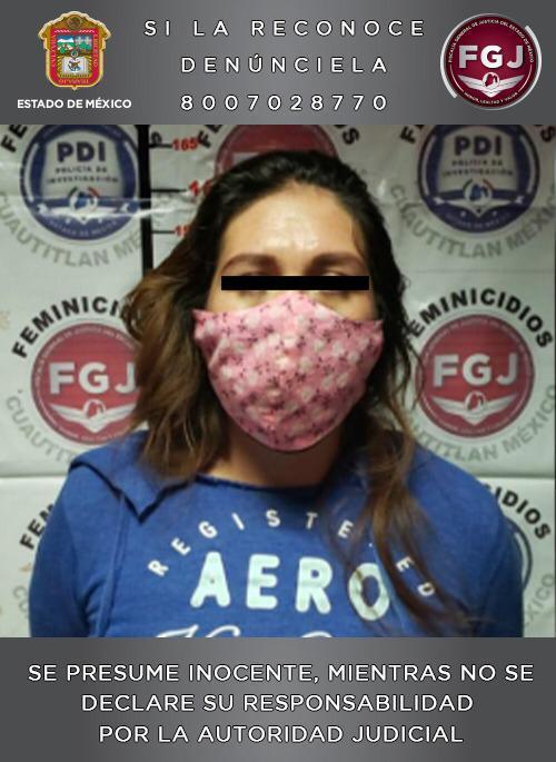 El día 22 de marzo del año 2020 la detenida, en complicidad con un individuo, habría causado la muerte a una mujer en un inmueble del Fraccionamiento Joyas de Cuautitlán, en el municipio de Cuautitlán. Posteriormente trasladaron el cuerpo al estado de Tlaxcala donde fue hallado.