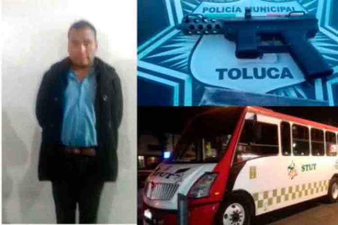 Después de haber asaltado al conductor de un autobús del transporte público, un hombre que utilizó una ametralladora fue detenido por policías municipales cuando trataba de huir caminando con el arma en la cintura en calles de esta ciudad.