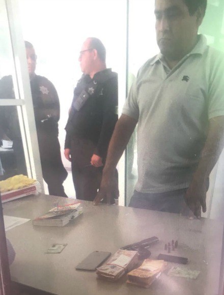 De acuerdo con los primeros reportes, su chofer identificado como Alejandro Bernal “N.”, viajaba a bordo de una camioneta blanca con placas de circulación ZHR-41-54, cuando fue detenido por elementos estatales, quienes hallaron al interior un arma de fuego corta y fajos de dinero en efectivo.