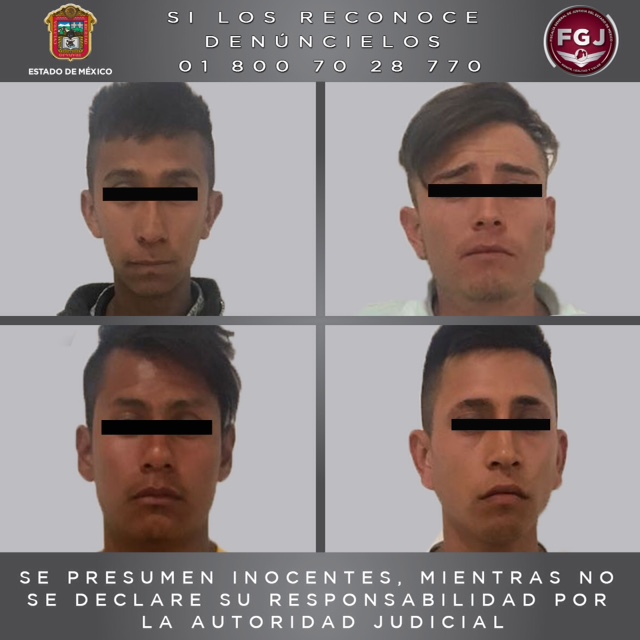 Los probables asaltantes fueron identificados como Julio César “ N”, de 22 años de edad; Alexis “N”, de 22 años, Ulises Dylan “N”, de 21 años, y Miguel Ángel “N” de 24 años.