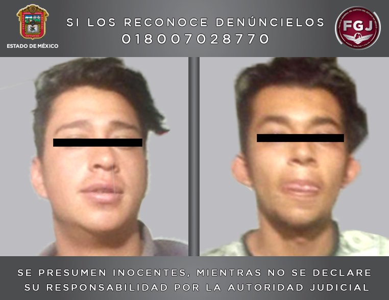 Los probables asaltantes fueron identificados como Bryan “N”, de 20 años de edad y Roberto “N” de 18 años, quienes fueron ingresados al Centro Penitenciario y de Reinserción Social Nezahualcóyotl.