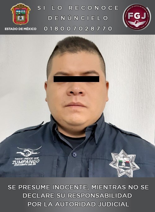 Agentes de Investigación de la Fiscalía Regional de Tecámac, de esta Fiscalía General de Justicia del Estado de México (FGJEM) cumplimentaron una orden de aprehensión en contra de Diego Iván “N”, quien se desempeñaba como elemento de la Policía Municipal de Zumpango y es investigado por su probable participación en el robo un vehículo con violencia, en el Barrio Santiago, Segunda Sección.