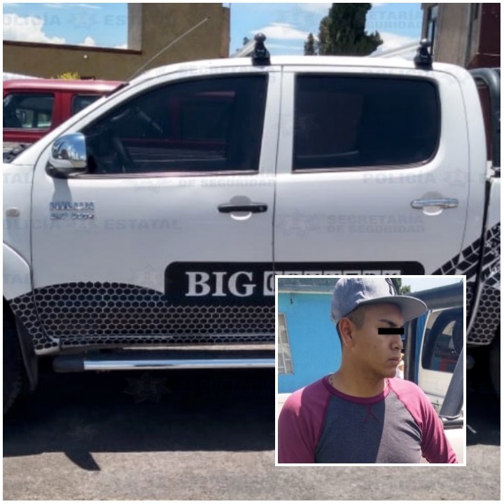Este sujeto que circulaba con un vehículo con reporte de robo fue detenido en la calle la Presa, en el poblado de San Lorenzo Tlalmimilolpan.