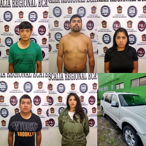 El presunto grupo delincuencial fue trasladado a la Fiscalía Regional de Ecatepec, junto con dos autos tipo Ibiza color rojo con placas de circulación MNO-8545 y un auto Lincon blanco con matrícula MTN-4202.