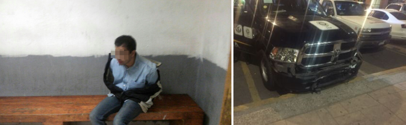 Lázaro Cárdenas y 5 de mayo, de pronto uno de ellos bajo de su vehículo, fue detenido y dijo llamarse Carlos Larios de 16 años de edad.