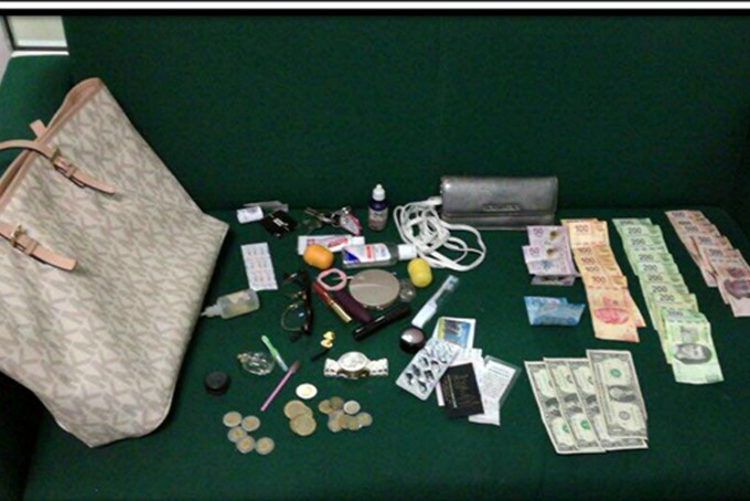 Al revisarla, los policías encontraron: 1 tarjeta de despensa, 1 tarjeta departamental, 2 tarjetas bancarias y 1 pasaporte de Estado Unidos presuntamente apócrifo, además de dinero en efectivo en pesos mexicano y dólares.