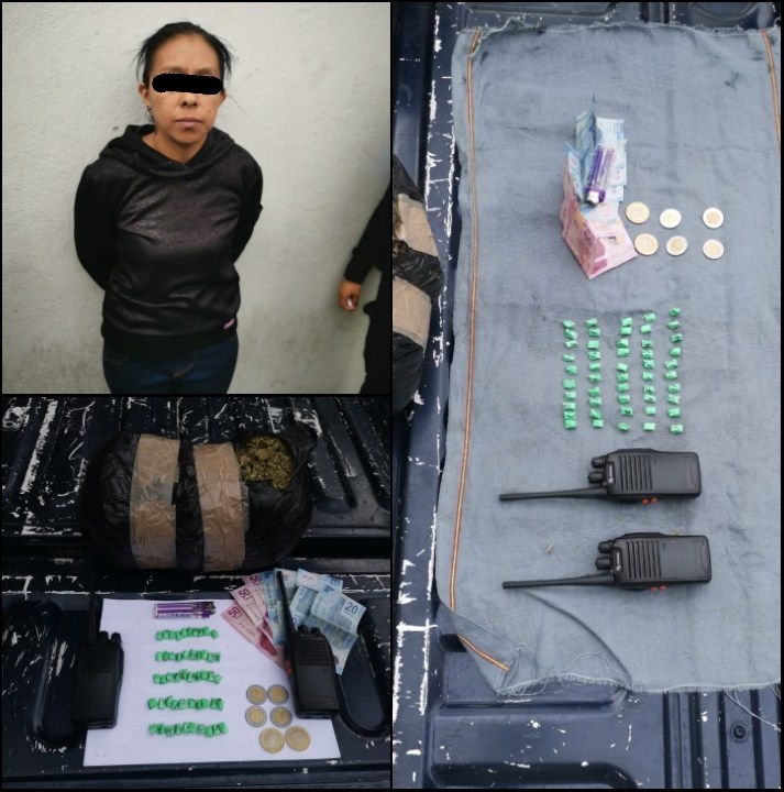Este martes, una mujer fue detenida justo en el momento en que intercambiaba una bolsa de color negro que al interior contenía hierba verde con las características de la mariguana con un total de 1kg con 200 gramos. Asimismo traía una bolsa de plástico trasparente con 50 papeles de color verde en su interior polvo blanco con las características de la cocaína.
