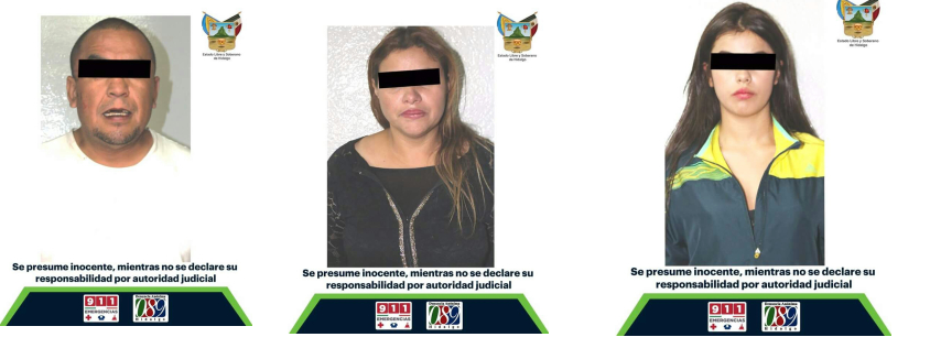 Los individuos se identificaron con los nombres con iniciales L.G.C., de 36 años, K.Y.G.G., de 18, y A.G.C., de 42, originarios de Ecatepec, Estado de México, quienes fueron asegurados y remitidos al área de retención.