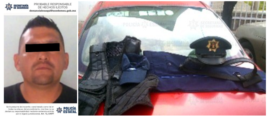 Un sujeto fue detenido con uniformes e insignias oficiales y de distintas corporaciones policiacas en el momento en el que conducía un vehículo Escort de color rojo, modelo 1999, con placas de circulación de la CDMX.
