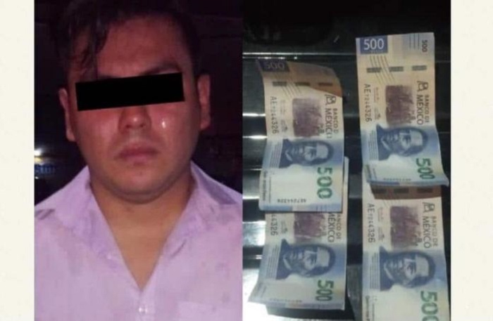 Tras la detención, le incautaron nueve copias falsas de 500 pesos.