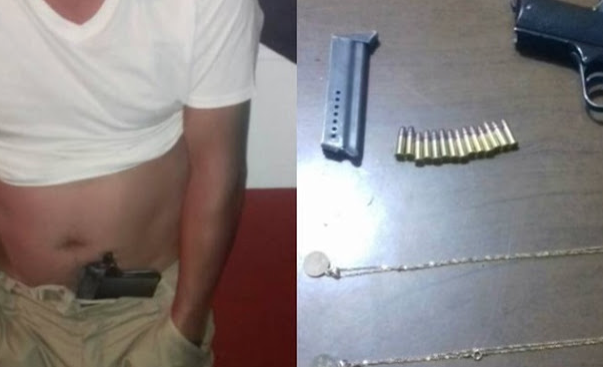 Al ser neutralizado, y durante una revisión a su persona, se le encontró entre su ropa una pistola calibre .22 milímetros, un cargador y 14 cartuchos útiles.