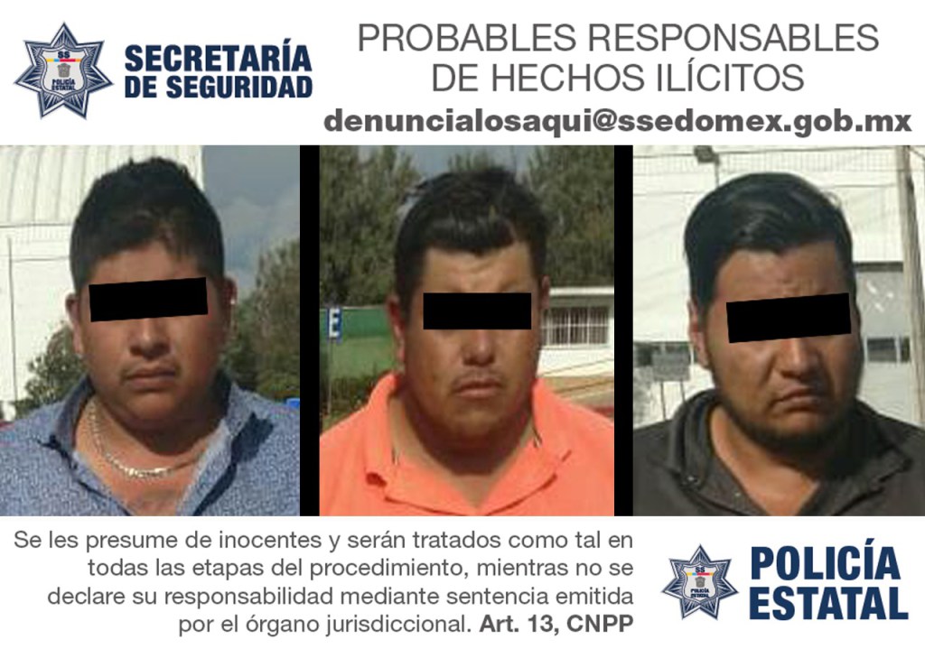 Con la implementación del operativo Coordinado Estado-Municipio (CEM), elementos de la Secretaría de Seguridad (SS) y de la Policía Municipal detuvieron a quienes dijeron llamarse José Luis “N”, de 32 años de edad, así como a Octavio Azael “N” y José Armando “N”, ambos de 24 años, cuando transitaban por el Circuito Exterior Mexiquense.