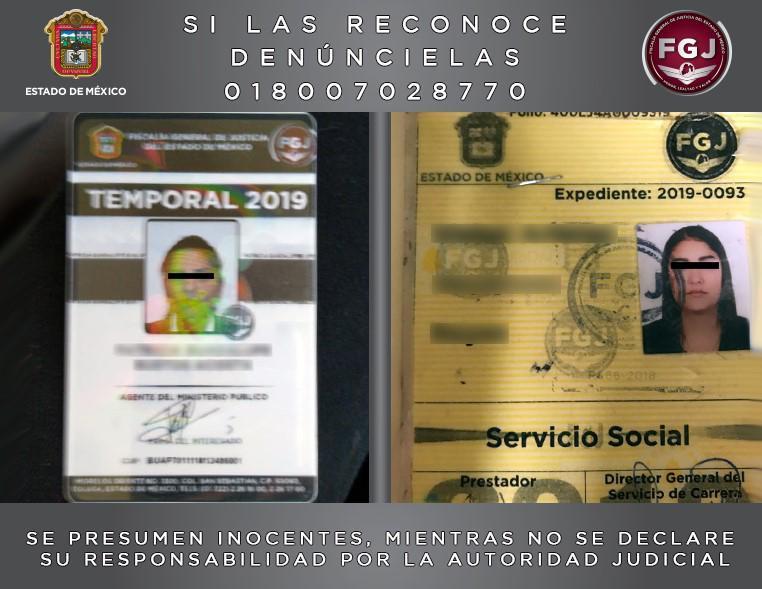 Se trata de Patricia Guadalupe “N”, quien causó alta como servidora pública de la FGJEM, el día 1 de julio de este año, y Vivian Arianet “N” misma que se identificó con un gafete de prestadora se servicio social el cual esta vencido, ya que tiene como fecha de culminación el 30 de julio de este año.