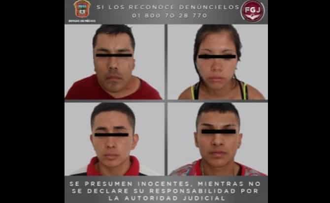 Se trata de Luis “N”, de 21 años de edad; Brandon Adolfo “N”, de 20 años; Juan Carlos “N”, de 32 años, y Lourdes “N”, de 21 años, quienes al parecer despojaron a una persona de su vehículo Ford, tipo Expedition, en calles de la colonia Ciudad Azteca, en Ecatepec.