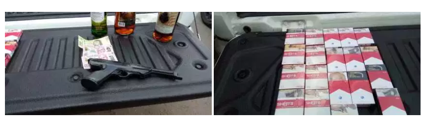 En esta ocasión, el robo fue de tres botellas una de whisky, una de brandy los Reyes y otra de Brandy Presidente, así como 19 cajetillas de cigarros y trescientos pesos en efectivo.