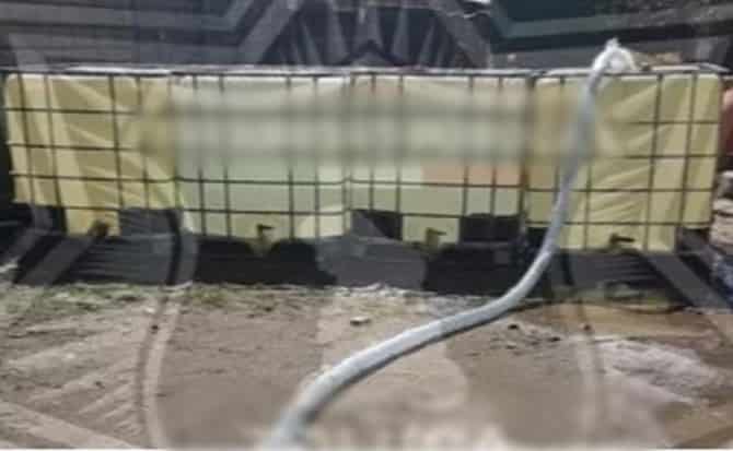 Fueron asegurados en el lugar quienes dijeron llamarse Orlando, Ricardo y Luis, de 22, 23 y 29 años de edad, respectivamente, al inspeccionar el área los agentes encontraron ocho contenedores con capacidad de mil litros cada uno, de los cuales cuatro estaban vacíos y los demás contenían hidrocarburo; al revisar el estatus del tracto camión descubrieron que cuenta con reporte de robo vigente.