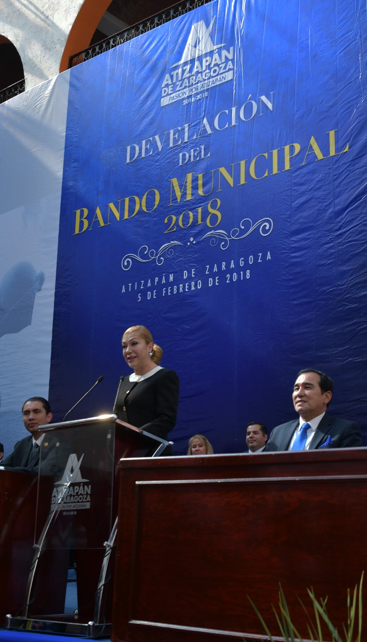En el marco de la celebración del aniversario 101 de la Constitución Mexicana y Mexiquense, Ana Balderas presidenta municipal de Atizapán de Zaragoza, realizó la develación del bando municipal 2018 en el Palacio Municipal, el Pueblo de Calacoaya, San Mateo Tecoloapan y en la Cabecera Municipal.