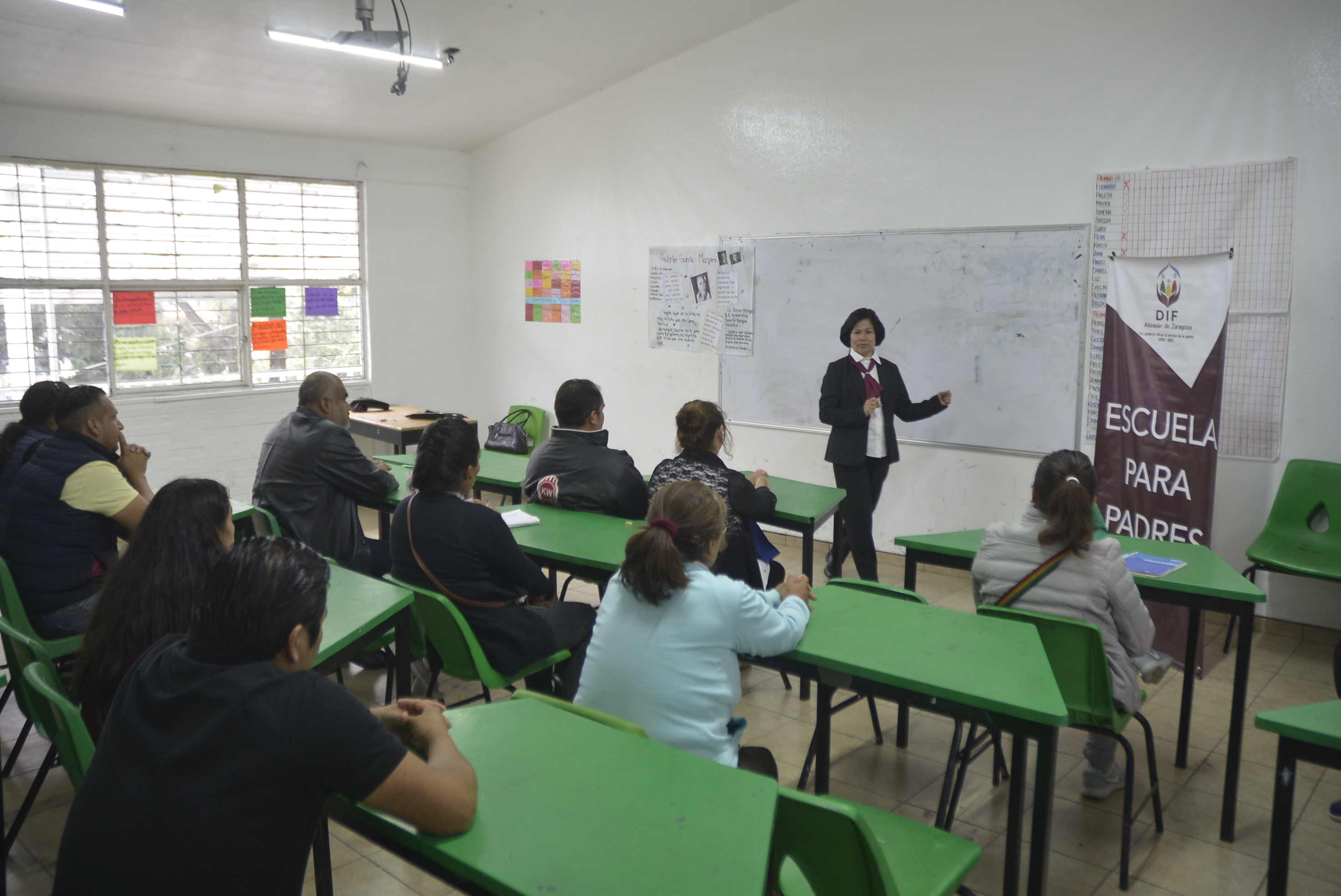Con el programa “Escuela para Padres” se ofrecen cursos, pláticas y talleres que orientan a padres de familia sobre la mejor manera de actuar o comunicarse con los menores en las diferentes etapas de su vida.