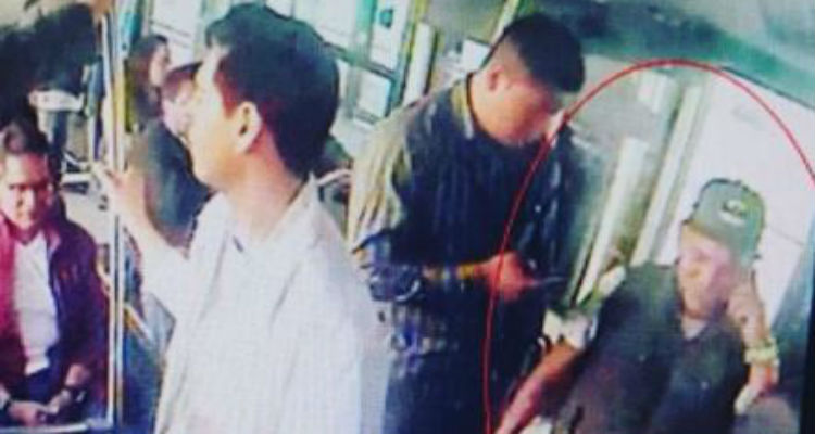 Las imágenes fueron captadas por cámaras de vigilancia de la unidad y muestran a los dos delincuentes. Uno de ellos fingió hablar por teléfono al momento de abordar al Metrobús.