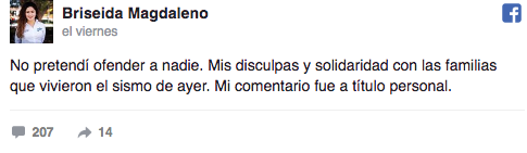 Luego de los comentarios negativos, Briseida optó por borrar el mensaje y escribió: