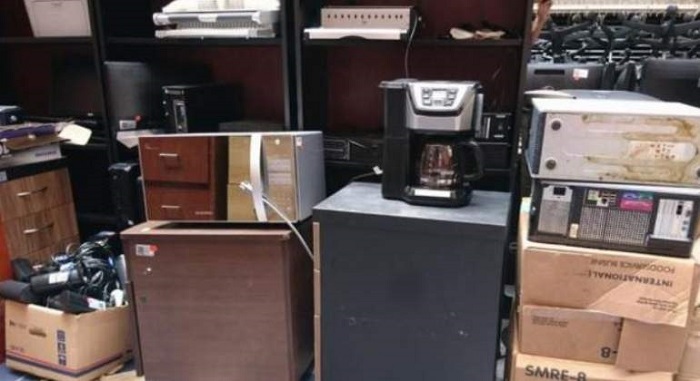 Televisores, escritorios, teléfonos, archiveros, faxes, impresoras, hornos de microondas, sillas y cafeteras son algunos de los cachivaches que el PRI ya no utilizará al ver reducidas sus oficinas y personal, y que puso en exhibición para que cualquier grupo parlamentario, con solo llevar los datos de la oficina y el diputado, pueda quedarse con ellos.