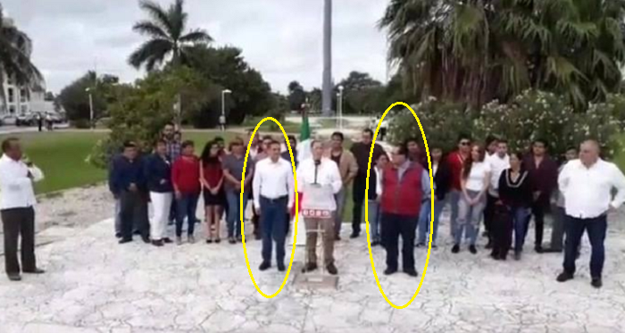 Se trata Raymundo King y Manuel Andrade Díaz, quienes se hallaban parados a los costados del exfuncionario federal mientras platicaba sobre las actividades a realizar en su visita a la entidad.