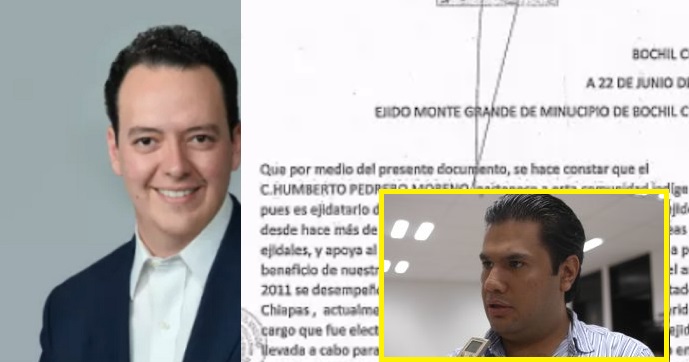 De acuerdo con una investigación de Chiapas Paralelo, para justificar la postulación de Humberto Pedrero Moreno el PVEM presentó una constancia que firmó Alejandro Escobar Núñez, quien se ostentó como Comisariado Ejidal del Ejido Monte Grande, del municipio de Bochil. En la constancia se aseguró que Pedrero pertenecía a la comunidad indígena.