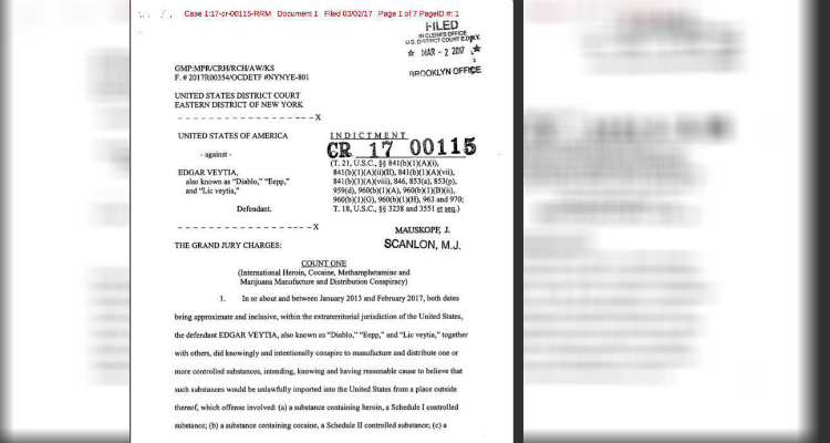 De acuerdo con el documento, Édgar Veytia era conocido con varios sobrenombres como “Diablo”, “Eepp” o “Lic. Veytia” y habría operado junto a varias personas para manufacturar y distribuir drogas en los Estados Unidos entre enero del 2013 y febrero del 2017.