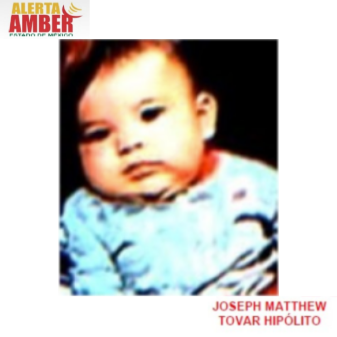 Autoridades del Estado de México emitieron un boletín de Alerta Amber para localizar a Joseph Matthew Tovar Hipólito, de 4 meses de edad, el cual fue visto por última vez el día 16 de noviembre de 2020, en la colonia Lázaro Cárdenas, municipio de Cuautitlán.