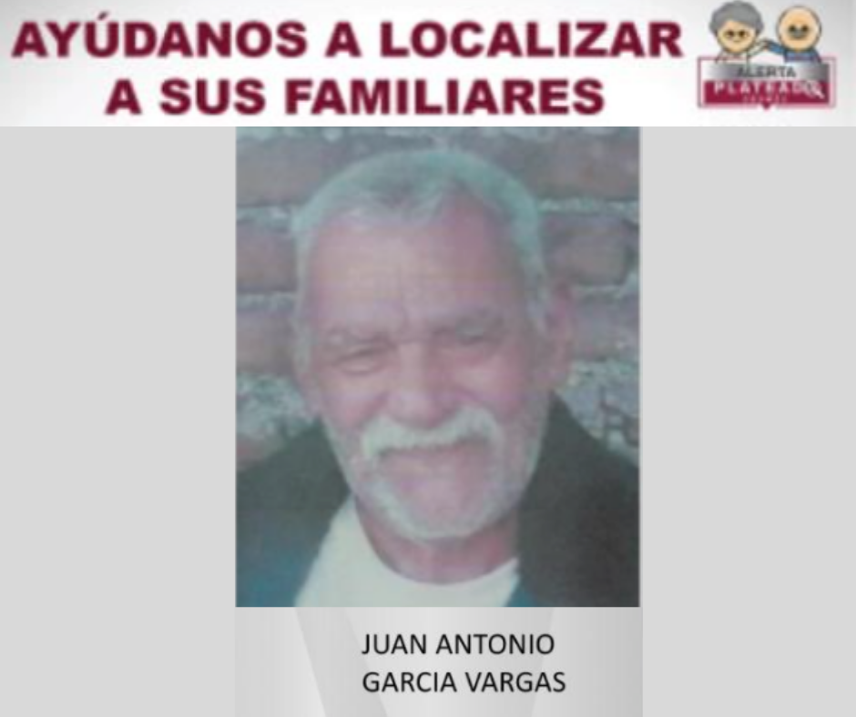 Autoridades del Estado de México emitieron un boletín de Alerta Plateada para localizar a Don Juan, de 74 años de edad, el cual fue visto por última vez el día 08 de octubre en la colonia Jardines de Santa Clara, municipio de Ecatepec.