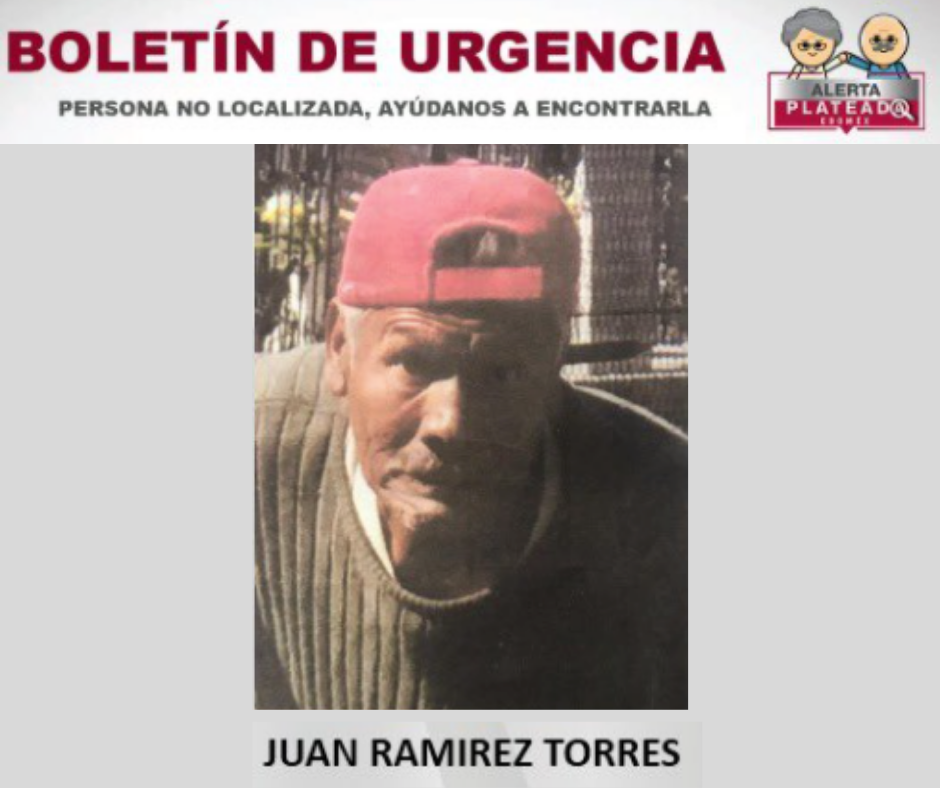 Autoridades del Estado de México emitieron un boletín de Alerta Plateada para localizar a Don Juan Ramírez Torres, de 74 años de edad, el cual fue visto por última vez el día 05 de noviembre de 2020, en la colonia República Mexicana, municipio de Coacalco.