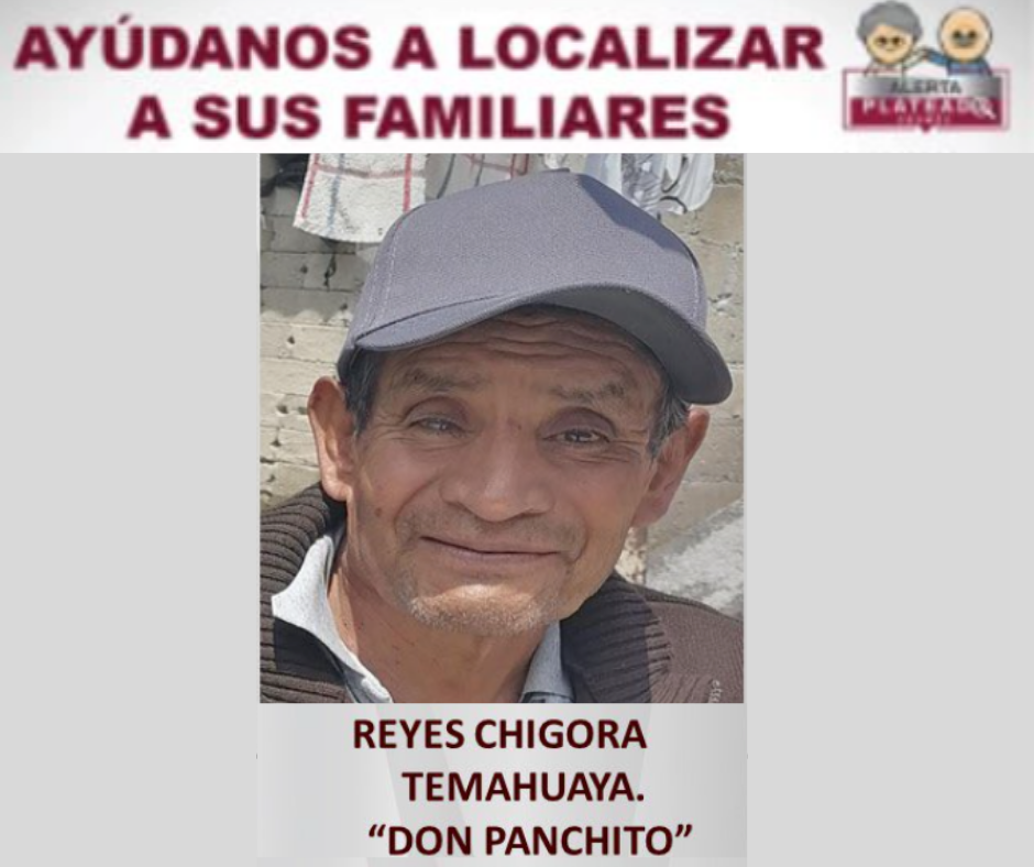 Autoridades del Estado de México emitieron un boletín de Alerta Plateada para localizar al señor Reyes Chigora Temahuaya, conocido como “Don Panchito”, de 70 años de edad, el cual fue visto por última vez en San Isidro Reservado, San Francisco Tlalcilalcalpan, Almoloya de Juárez.
