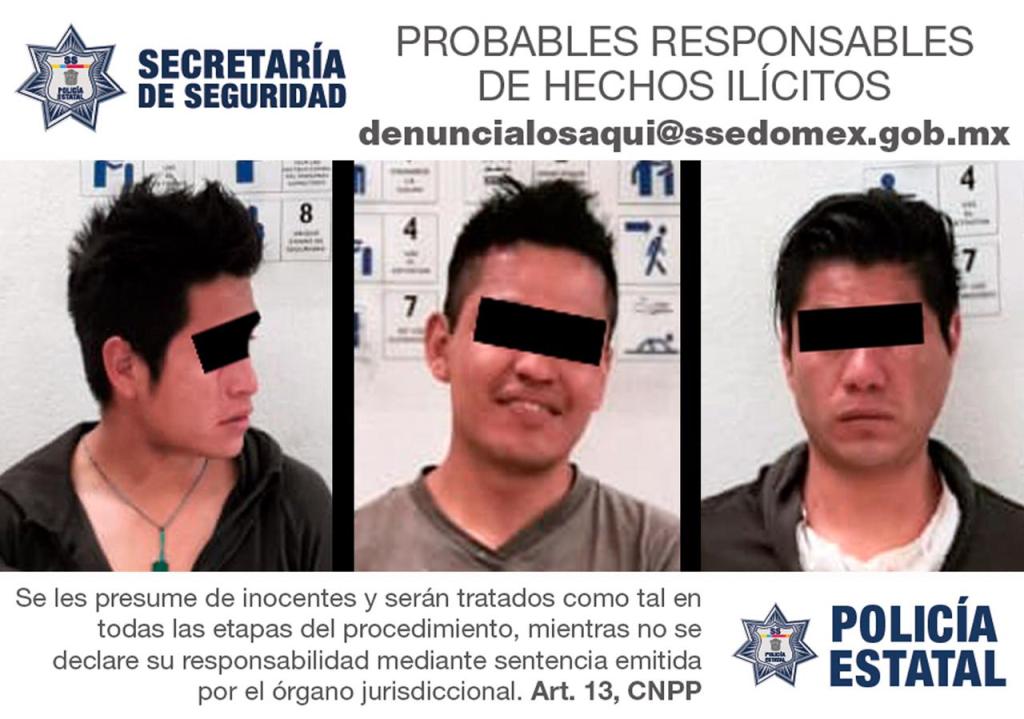 Los uniformados detuvieron a Mauricio “N”, Emmanuel “N” e Israel “N”, de 23, 26 y 31 años de edad respectivamente, quienes fueron señalados por las víctimas de haberlos amagado con un cuchillo con el mango color blanco, para despojarlos de un billete de 500 pesos y una caja de con 24 cervezas.