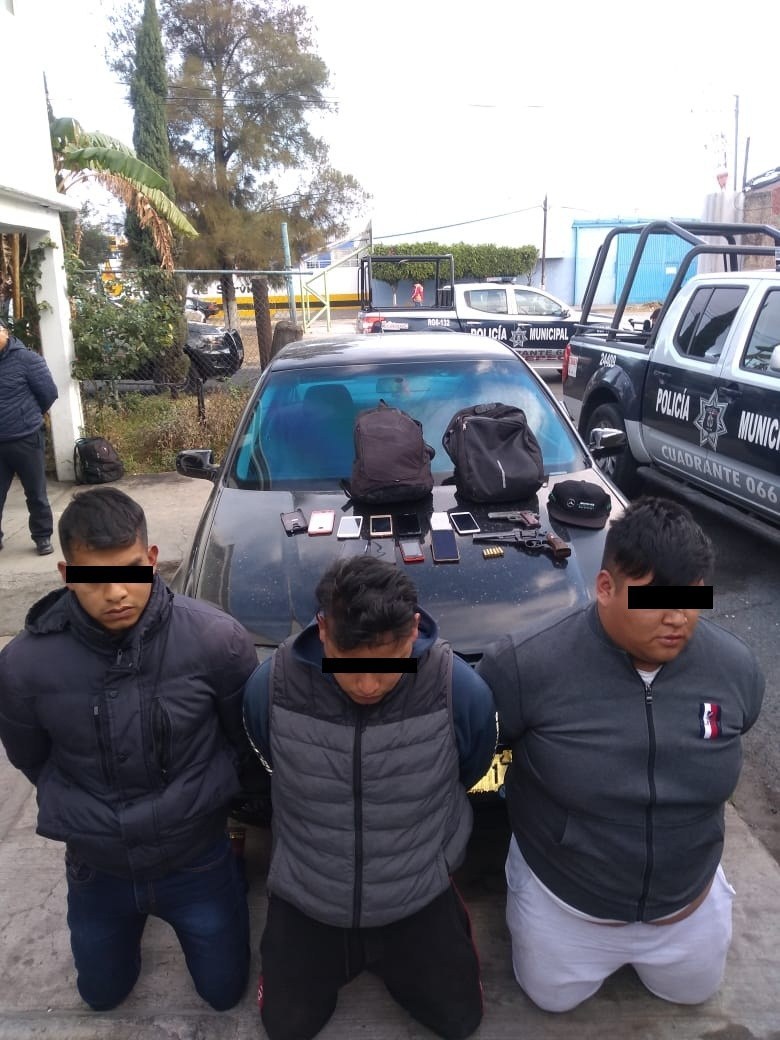 Tres hombres fueron detenidos por policías municipales de Ecatepec por su probable participación en el asalto a pasajeros de una unidad del transporte público, en calle Valle de Guadiana esquina con Cerro de los Cimientos, colonia Sagitario 3.