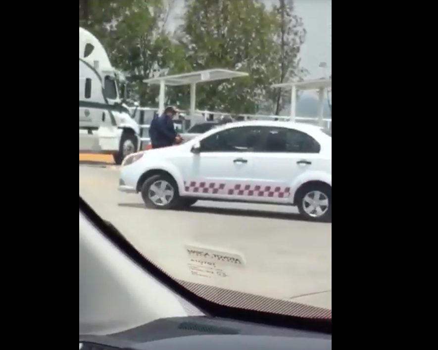 El taxista, que se encontraba atrás de la unidad para salir del aparcamiento, al ver el hecho retrocede para segundos después, ver cómo el sujeto armado activa su arma y dispara hacia la unidad vehicular.