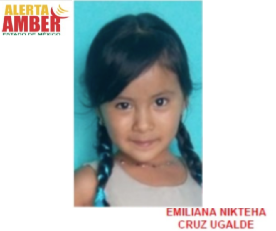 Autoridades del Estado de México activaron la Alerta Amber para localizar a Emiliana Nikteha Cruz Ugalde, de 4 años de edad, la cual fue vista por sus familiares el día 19 de octubre de 2020 en el municipio de Ecatepec de Morelos.