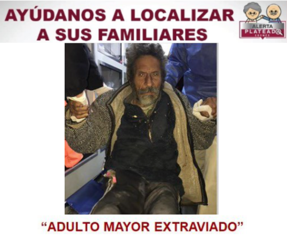 Autoridades del Estado de México emitieron un boletín de Alerta Plateada para localizar a los familiares de un adulto mayor extraviado, el cual fue localizado en la colonia Agrícola Lázaro Cárdenas, municipio de Metepec.