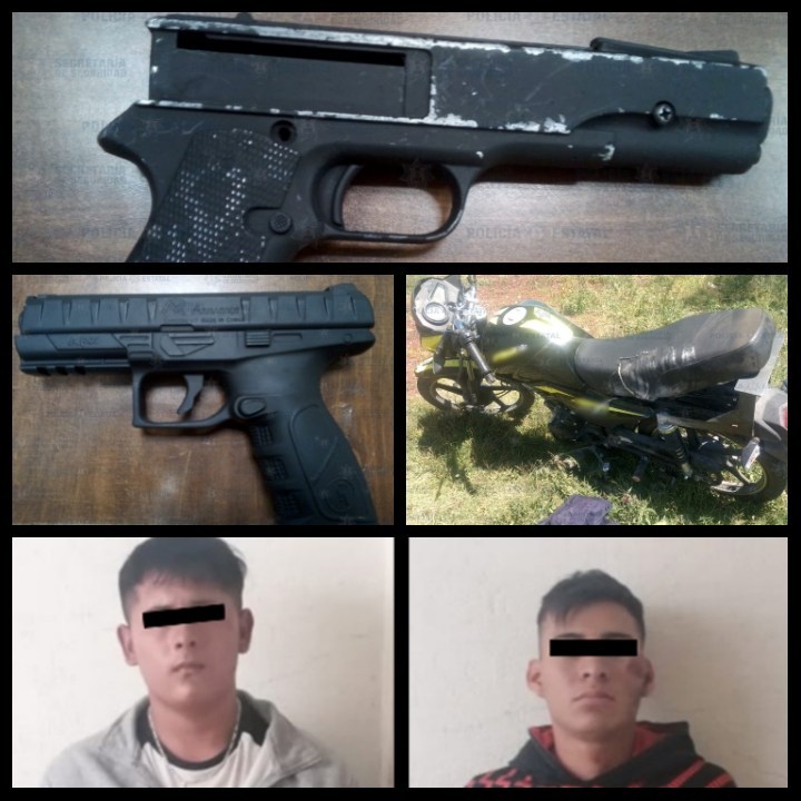 Los asegurados responden al nombre de Martín “N” y Víctor Hugo “N” de 20 y 18 años de edad respectivamente, quienes al realizarles una revisión apegada al protocolo de actuación se les decomisaron dos armas de fuego, una réplica y una de diábolos, las cuales aparentemente utilizaron para amenazar a las víctimas.