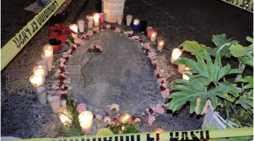Al ver la silueta de la Virgen de Guadalupe, plasmada en el pavimento de la calle, “como vecinos nos organizamos para resguardar la zona, pusimos veladoras y flores”, indicó Beatriz Noriega Ramírez, vecina de la calle San Marqueña.