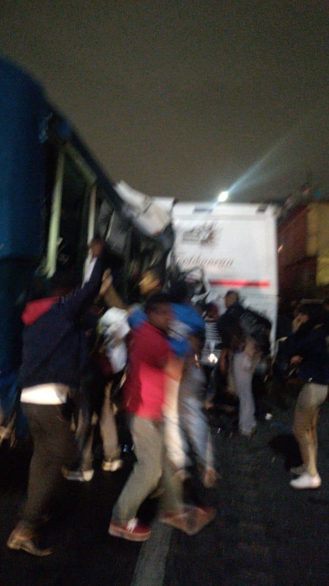 Dos autobuses tuvieron un fuerte alcance sobre la autopista México – Pachuca, a la altura del kilómetro 16.