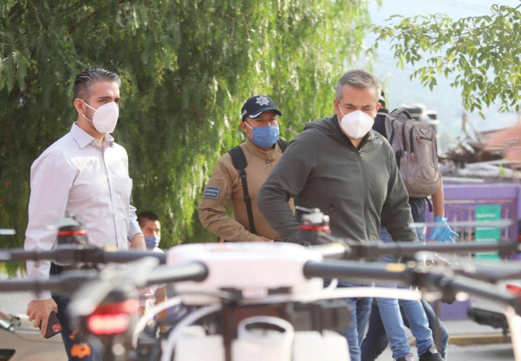 En esta zona, una de las más altas del municipio, comenzamos a sanitizar para apoyarlos a través de este dron, que cuenta con tecnología avanzada y que se suma al Plan Ehécatl para enfrentar la contingencia actual”, aseguró Vilchis Contreras.