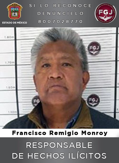 Los elementos de prueba recabados y aportados por el Representante Social de la Fiscalía Especializada de Homicidio del Valle de Toluca de esta Fiscalía General de Justicia del Estado de México (FGJEM) fueron determinantes para que un Juez dictara esta condena en contra de Remigio Monroy. Además le fijó multas de 700 días de salario mínimo y 224 mil 869 pesos como reparación del daño.