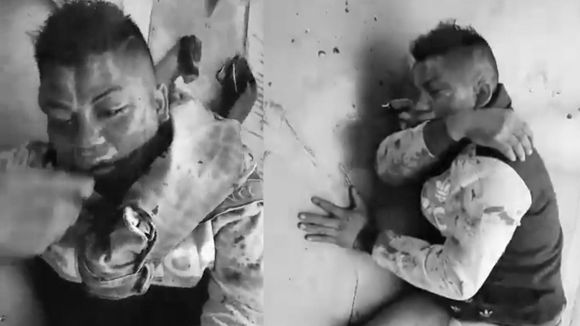 Dentro del video se ve al hombre siendo golpeado en el suelo mientras le gritan y le dicen que ‘’sin cuete (arma) valen para pura v…’’.