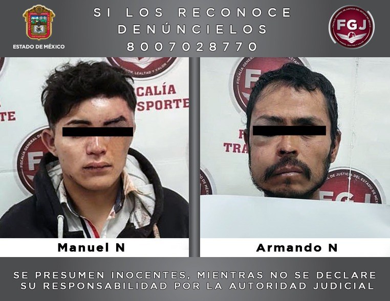Después de que habrían cometido el asalto con violencia, pretendieron huir no obstante fueron detenidos por elementos de la Policía Municipal de Ecatepec, quienes se percataron de los hechos, por ello los presentaron ante el Representante Social, quien integró la carpeta de investigación por el delito de robo con violencia a transporte público de pasajeros.
