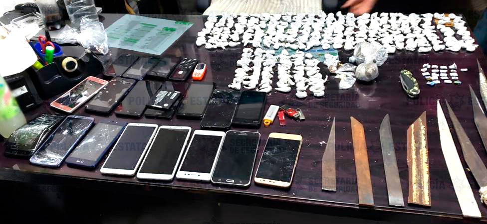 Asimismo, se localizaron 20 teléfonos celulares de diferentes marcas, todos sin la tarjeta SIM correspondiente; además de 8 puntas de metal que pudieran ser utilizadas como objetos punzocortantes.
