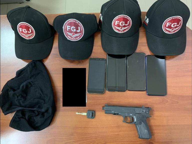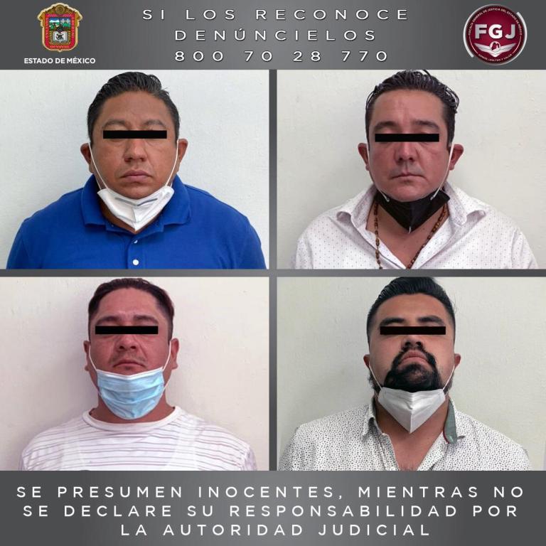 Ante esta situación fueron asegurados Alejandro Eder “N” de 34 años de edad; José Armando “N” de 24 años; Raúl Abraham “N” de 34 años y Eduardo “N” de 36 años. A estos individuos les fue asegurada un arma de fuego, así como gorras con insignias de la Fiscalía General de Justicia del Estado de México.
