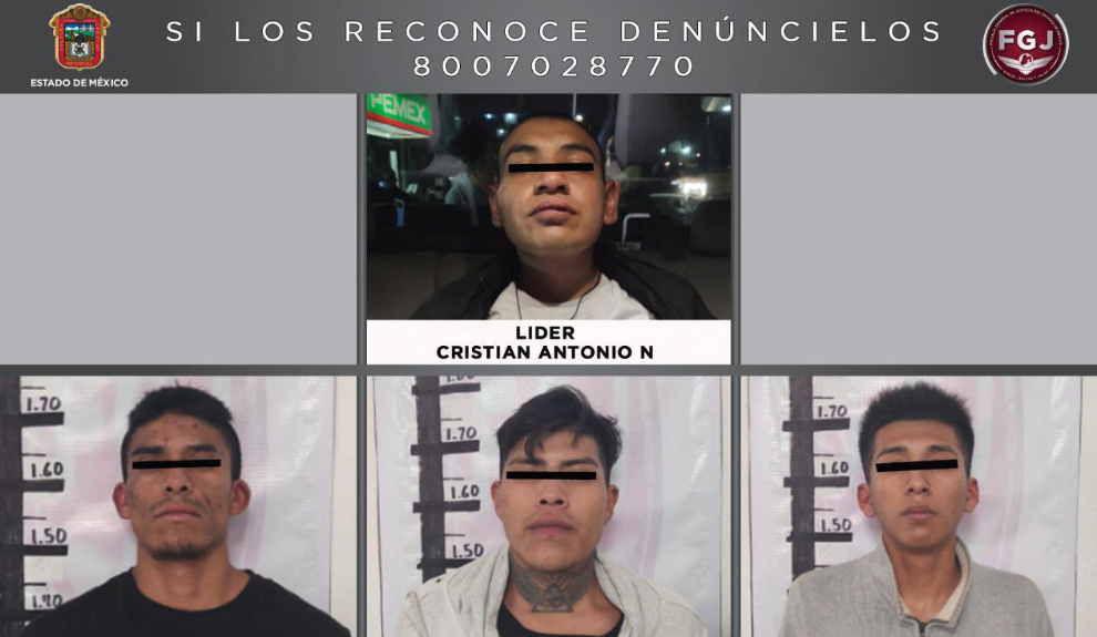 Tras ser asegurados fueron presentados ante el Agente del Ministerio Público, quien integró la carpeta de investigación por estos hechos y con los datos aportados, así como a una investigación de gabinete y campo hecha por Policías de la FGJEM, fue posible identificar al líder de esta banda delictiva, mismo que fue detenido, al igual que otros tres de sus cómplices.