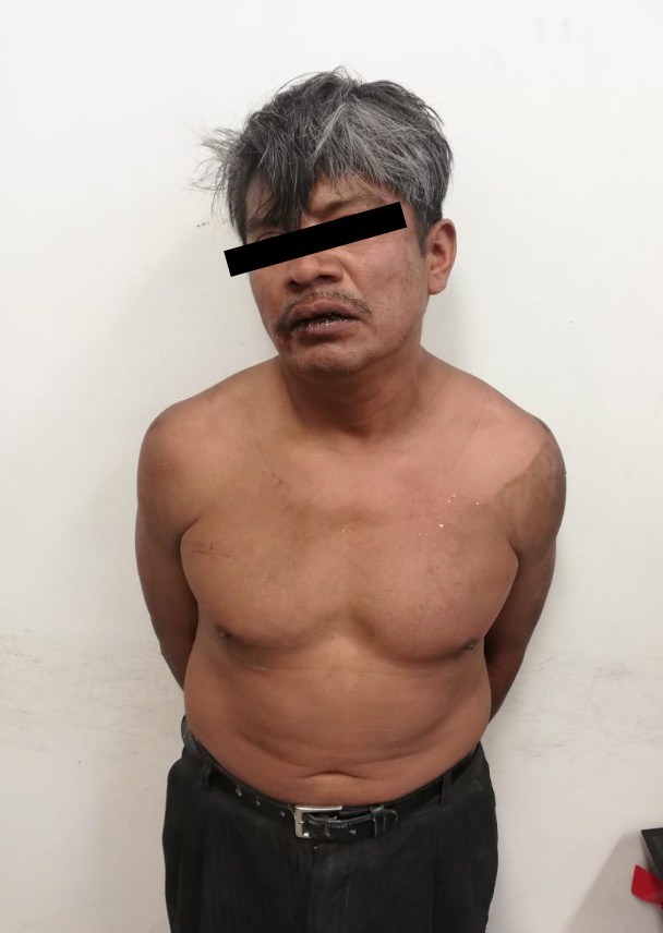 Efectivos adscritos a la Dirección General de Combate al Robo de Vehículos y Transporte (DGCRVyT), realizaban patrullajes preventivos cuando efectuaron la detención del individuo identificado como Heriberto “N” de 47 años de edad, sobre la calle Moneda, en la colonia Cuauhtémoc de este municipio.
