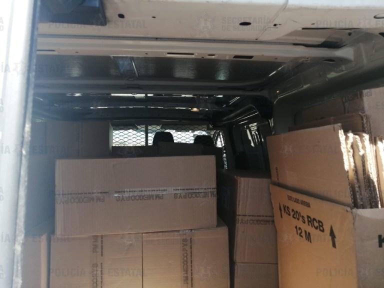 Resultado del Operativo Centinela, implementado para evitar el robo de vehículos, elementos de la Secretaría de Seguridad (SS), en coordinación con Policías Municipales de esta demarcación, recuperaron una camioneta Ford Transit, que transportaba paquetes de cigarros, logrando asegurar dos vehículos, donde se trasladaban los probables responsables.