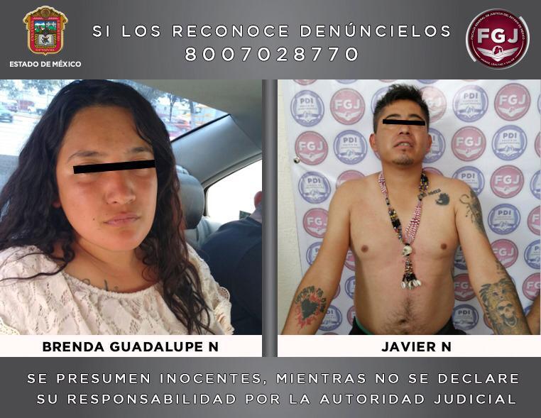 Por ello los servidores públicos de la FGJEM realizaron una movilización en la zona que permitió la detención de Brenda Guadalupe “N”, de 22 años y Javier “N”, alias “El Gato” de 36 años de edad. A estas personas les fue asegurado un automóvil, así como pertenencias que la víctima reconoció como suyas.
